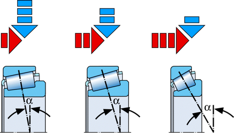 Piros nyíl - axiális erő; Kék nyíl - radiális erő