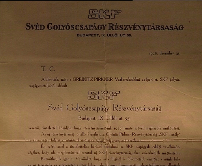 Az eredeti alapító okirat - már 1928-ban a máig használt logóval (Forrás: SKF)