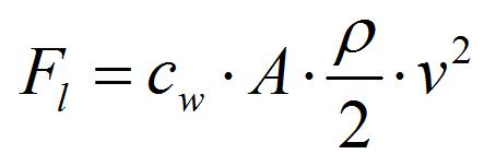 Sajnos ennek a témának a tárgyalását nem ússzuk meg egy jó kis képlet nélkül. Az erő (F), ami a járművünkre hatni fog (mégpedig a haladás irányával ellentétesen) négy tényezőtől függ. Az első a jármű homlokfelületének nagysága, a második a már említett légellenállási- vagy alaktényező, harmadik a közeg (levegő) sűrűsége, végül, de elsősorban pedig a közeg járműhöz viszonyított sebessége. Ebből csak a sűrűség az, amire semmilyen formában nincsen ráhatásunk, a többiben azért mi is ott vagyunk.
