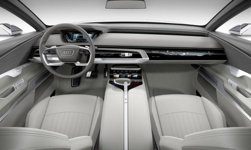 A hatalmas hűtőmaszkot Mátrix LED fényszórók fogják közre, ez a technológia már ma is kapható az A6-oshoz, az A8-ashoz és a TT-hez. Bár az ajtókra hagyományos kilincseket tettek, a nyitás már nem szokványos: elég csak hozzáérni a kilincsekhez, és az ajtókat villanymotorok tárják ki.