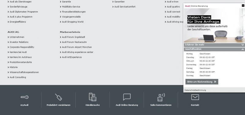 Gyors csevej a szakemberrel – részlet az audi.de hpnlapjáról