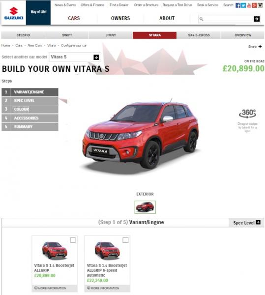 Egyszerű, de nagyszerű autó konfigurátor a Suzukitól (forrás: suzuki.co.uk)