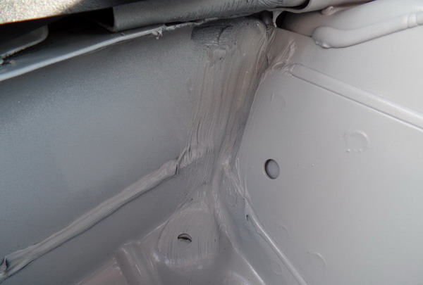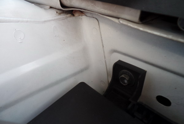 De nem szabad itt megállnunk, és megelégednünk, hogy rendben, ezeket az elemeket lefújták. A karosszéria elemek belső illesztéseire, csavarkötéseire is rá kell néznünk. Sajnos itt ért minket az első rossz hír. A jobb első torony illesztéseinél felfedezhető volt, hogy a szigetelések nem gyári kivitelűek. Ebből pedig arra lehetett következtetni, hogy bizony nem kis ütést kaphatott korábban az autó.