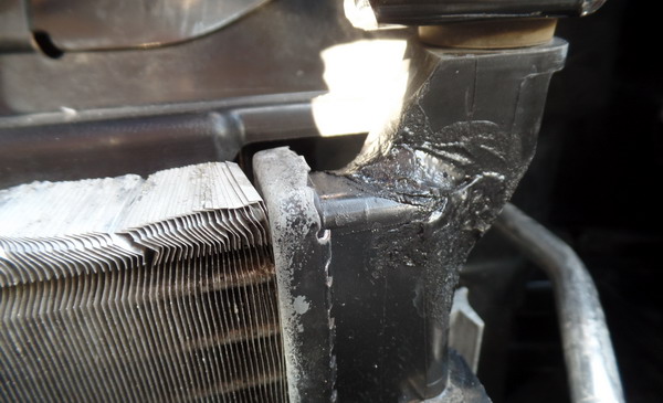 A szakszerű javítási technológia az ilyen sérülések esetén az egész hűtő cseréjét előírja. Igen ám, de a hűtő nagyon drága. Lusta vagyok megnézni a szakértői programomban most, hogy pontosan mennyibe kerül, de a japán alkatrészárakat ismerve, ezt nem lehet megúszni hetvenezer forint alatt. Egyszerűbb egy műanyagolvasztó pisztoly szakszerű használata és már készen is van az új rögzítés.