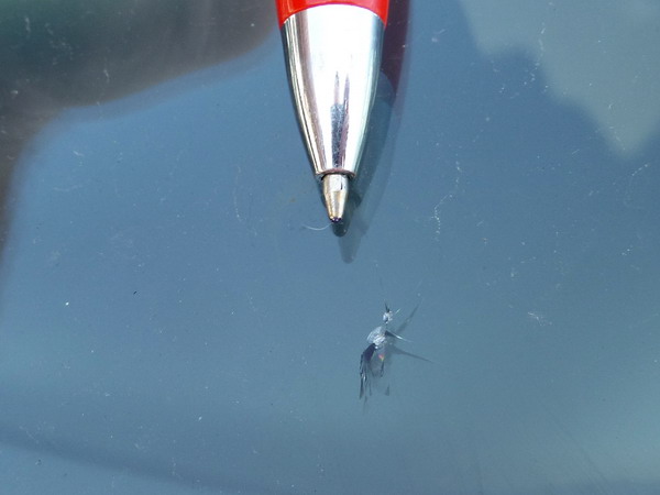 Viszonyításképpen egy toll hegyével szoktatm szemléltetni a sérülés nagyságát az üvegen