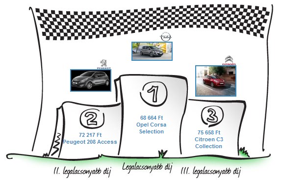 Azon 3 modellt, melyek a modellszűrésünk és a paraméterezésünk alapján a leggazdaságosabbak, a TCO Kalkulátor egy versenydobogóra helyezi. Vevőként számunkra anyagilag az a kedvező, ha a dobogó legfelső fokán álló modellt választjuk, azt vásároljuk meg.