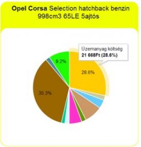 Statisztikák szerint kisautó szegmensben hosszú ideje Magyarország legkedveltebb autómodellje az Opel Corsa. Találomra kiválasztottam egy 3 millió forint alatti új áron elérhető, „selection” felszereltségű, hatchback (csapott hátú) karosszériájú, benzines, 998cm3-is, 65LE-s, benzines, manuális váltós, 5ajtós modellt a TCO Kalkulátorban.