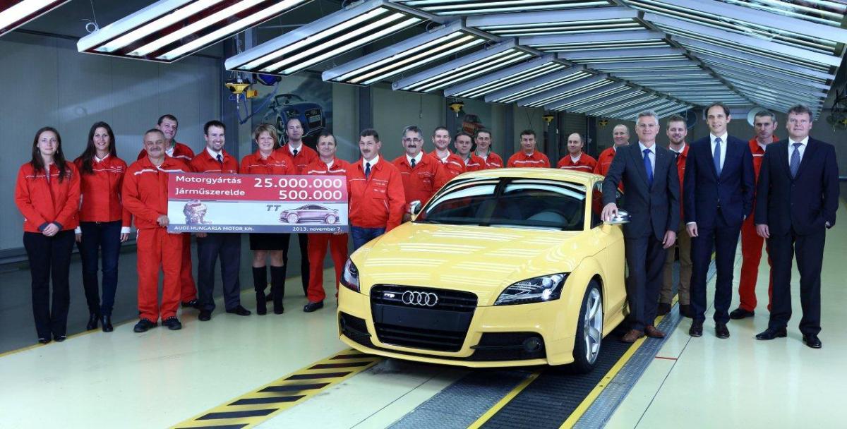 A győri gyár első embere két fontos eseményt is felidézett Ingolstadtban, ami ugyancsak a tavalyi év krónikájához tartozott. Elkészült Győrben a 25 milliomodik motor és legördült a szalagról a félmilliomodik TT sportautó is.