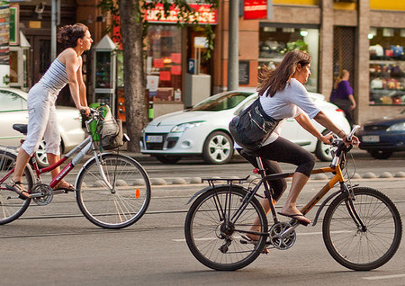 Az autósok fújnak a biciklisekre, a biciklisek fújnak a gyalogosokra, a gyalogosok fújnak mindenkire, a biciklisek fújnak a buszvezetőkre. Senkinek sincs igaza, egyszerűen arról van szó, hogy a hazai közlekedési morál kissé balkáni. Az viszont nem kérdés, hogy a biciklista húzza a rövidebbet egy baleset esetén, így érdemes a következő gondolattal nyeregbe szállni: minden autós meg akar ölni, és minden gyalogos süket és vak. Ez persze erős túlzás, de a túléléshez jó szempont. Ha ezt tudatosítottuk magunkban, érdemes végignézni szeretett biciklinken. Remélhetőleg nem egy roncs. A felszerelés lényege röviden: lámpák, fékek, prizma, csengő legyenek, a bukósisak pedig erősen javallott.
