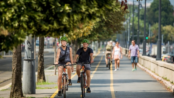 A buszsávokat csak akkor használhatjuk, ha erre külön tábla ad engedélyt, a KRESZ-alkotók biztonságosabbnak gondolják, ha balról az autók, jobbról a buszok, taxik és a motorosok suhannak. Ha pedig a biciklisávon kívül tekerünk, simán megbüntethetnek itthon is.A kilométereket falva hamar ráébredünk, hogy a gyalogosok akkor sem hagynak helyet, ha ötven méterenként világít az orruk előtt a sárga piktogram. Nem rosszindulatból, hanem mert pár éve a bicikliutat még úgy hívták, hogy a járda jobb vagy bal oldala. Sebaj, ezért van a csengő. Nem kell villamosként csörömpölni, főleg nem kell anyázni, hiszen a cél a békés együttélés.