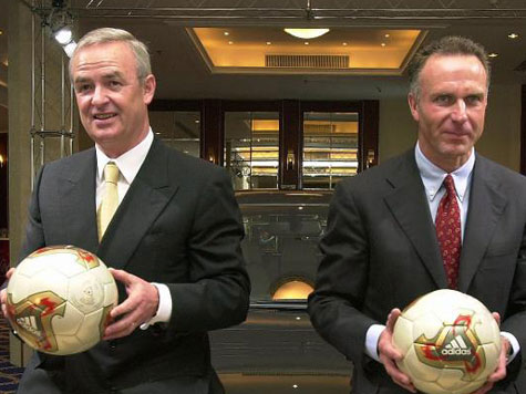 Rajong a fociért, a képen Karl-Heinz Rummeniggével, a Bayern München vezetőjével.