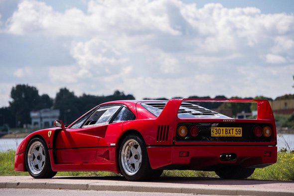 A Rosso Corsa színű szupersportautó bézs bőrkárpitozással rendelkezik, és tökéletes állapotban van, csak 36 ezer kilométert futott negyed évszázad alatt. Korának leggyorsabb szériaautója volt 2,9 literes, 478 lóerős biturbó V8-assal hajtott F40, mivel a végsebessége elérte a 324 km/h.