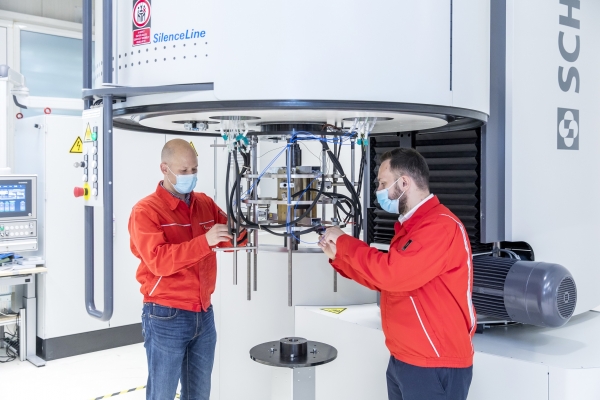 A két új vizsgálóberenedezéssel az e-motor rotorjainak centrifugáló, repedés- és dinamikus fordulatszám tesztelése végezhető el. A vizsgálat során a rotort egy hermetikusan lezárt vizsgálókamrában felfüggesztik, és a szigorú biztonsági előírások betartásával a megfelelő fordulatszámra pörgetik fel. Ezzel egyidejűleg a zárt tesztkamrában a rotort felmelegítik a szabályozható, különbözőképpen bekapcsolható fűtőelemek. Az egyik vizsgálóberendezés egy nagyprecizitású lézerrel rendelkezik, amellyel a rotor kerületnövekedése online mérhető. Ezáltal megfigyelhető, hogyan viselkedik a rotor a teszt során a forgási sebesség függvényében mind radiális, mind pedig axiális irányban. Az innovatív, kapacitív és lézeroptikás technológiával felszerelt mérőrendszer rendkívül pontos mérést tesz lehetővé.