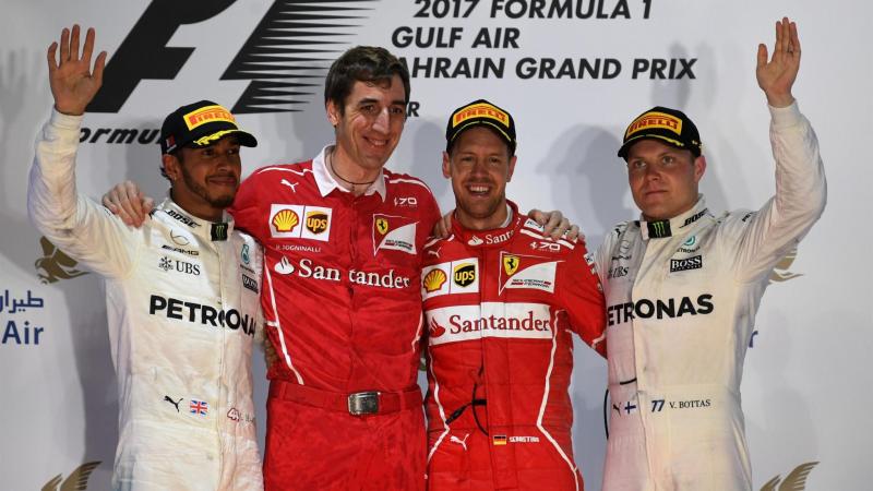 A 29 éves Vettel az idén másodszor, pályafutása során pedig 44. alkalommal nyert F1-es futamot, Bahreinben harmadszor diadalmaskodott. A harmadik helyen a pole pozícióból karrierje során először rajtoló Valtteri Bottas, a Mercedes finn pilótája zárt. A rajtot Bottas tökéletesen kapta el, így az első kanyarban megtartotta a vezető helyet, mögötte Vettel egy remek manőverrel "beugrott" Hamilton elé, s átvette a második pozíciót. Az ötödik körben Bottas, Vettel, Hamilton volt a dobogósok sorrendje. Vettel a 11. kör végén a boxba hajtott kerékcserére, majd a 13. körben Lance Stroll (Williams) és Carlos Sainz (Toro Rosso) balesete miatt a versenybíróság a pályára küldte a biztonsági autót, ezért a legtöbb pilóta, aki addig még nem járt a boxban, ekkor hajtott be.