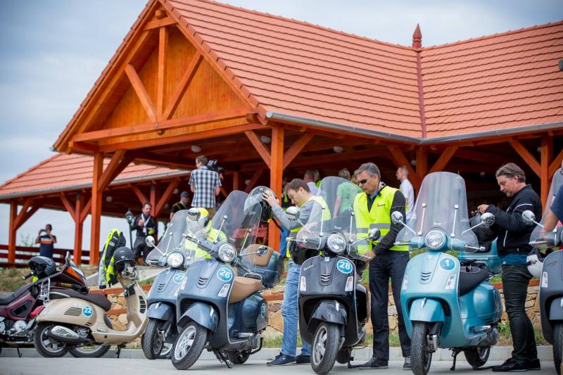 6.30 Csicsergős reggelre ébredtünk a II. Motoros Borok Útja Rallye rajtjának hajnalán. A nappal együtt keltünk, hogy minden tökéletesen induljon a budaörsi parkolóban. A koránkelőket friss kávéval és a szívet-lelket erősítő Csabai kolbászos falatkákkal vártuk. Sorra gurultak be a GTS300-as Vespák és a nagyobb kétkerekű versenytársaik. A regisztrációnál mindenki megkapta a rallye egység csomagját: közlekedési mellény, itiner, Borkiválóságok könyve.