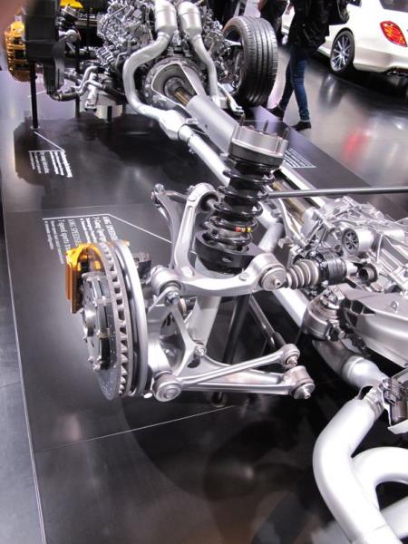Ahogy újságírósan mondják, az egyik csúcsragadozó, az AMG 4.0 literes V8 biturbó levetve karosszériáját, minden szerkezeti részletét feltárja. Motor elöl, kuplung, váltó hátul (transaxle konstrukció), váltó kétkuplungos 7 fokozatú, kerámia kompozit féktárcsa.