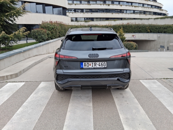 Karosszériája valamelyest kerekebb lett az elődmodellnél, az arculat meghatározó keskeny lámpa, illetve az óriási méretű hűtőrács markánsra rajzolja az autó elejét. De így karakteres! Kétféle karosszériával érhető el az új Q3, a klasszikus SUV praktikus forma – ilyen volt a tesztautó is –, a Sportback pedig kupés, sportosabb kivitel. Az autó alaktényezője mindössze 0,30, ez kategóriájában kifejezetten jónak számít.