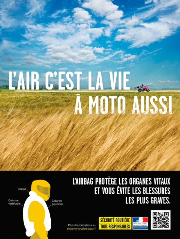 A motoros légzsák kampány egyik plakátja (forrás: Sécurité Routiére)