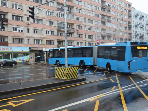 Itt újra van két oldalt besorolást jelző tábla, majd kezdődik a buszsáv. Az tiszta sor, hogy a záróvonallal is védett autóbusz forgalmi sávra a buszokon és taxikon kívül nem hajthat rá más. Persze a megszokott buszsáv forgalmi rendszer szerint, ha jobbra szeretnénk fordulni, akkor a kereszteződés előtt, az útburkolati jeleknek megfelelően rövid távon ráhajthatunk a buszsávra, hogy ne tartsuk fel a jobbra fordulás miatti elsőbbségadással az út forgalmát.