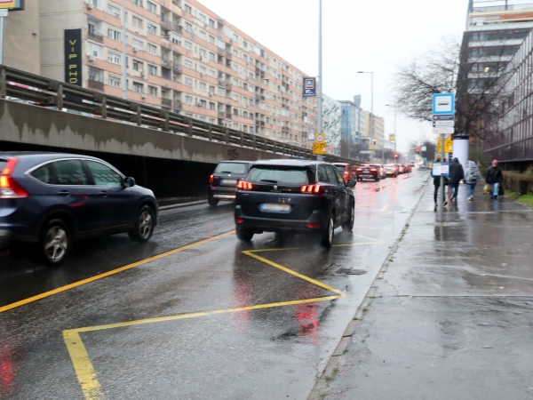 A két párhuzamosan futó sávból a külső autóbusz forgalmi sáv lett. A nyugdíjfolyósító épületével egyvonalban van egy kijelölt, lámpával is védett gyalogos átkelőhely. Ezt megelőzően mindkét oldalra kitáblázták a besorolás ideiglenes rendjét jelző, sárga alapú táblákat, ezt követően pedig útburkolati jeleket is felfestettek, hogy a külső sávot el kell hagyni, mert abból buszsáv lesz.