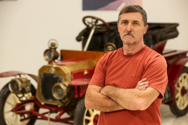 Bár vérbeli veteránosként az automobilokat sem veti meg Zoltán, ezekből jóval kevesebb került a birtokába az évtizedek során. Ezek után a sors furcsa fricskája, hogy gyűjteményének egyik legkülönlegesebb darabja nem kettő, hanem négy keréken gördül. A jelen időnek itt különös jelentősége van, hiszen egy olyan autó esetében, amely idén tölti be száztizenhatodik születésnapját, egyáltalán nem magától értetődő, hogy üzemképes.