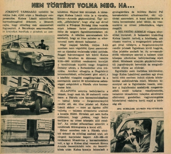 Kabos László, az ismert komikus 1959-ben egy Simca Aronde kormányánál okozott balesetet (Forrás: ADT)