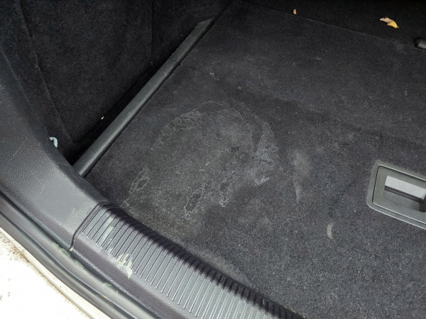 Nem kellett sokáig keresgélnünk. A jobb hátsó ülés előtti padlólemez kárpitját két ujjal benyomva azonnal bugyogott fel a talajvíz. Ez nem azt jelenti, hogy ott még a tisztítás után kicsit nedves. Nem azt, hogy valahonnan odajut egy pici víz. Hanem azt, hogyha szétszednénk a burkolatokat, akkor a karosszériában literszám állna a víz, plusz még amit a szivacsos szerkezetű kárpitból a lavórba tudnánk csavarni.