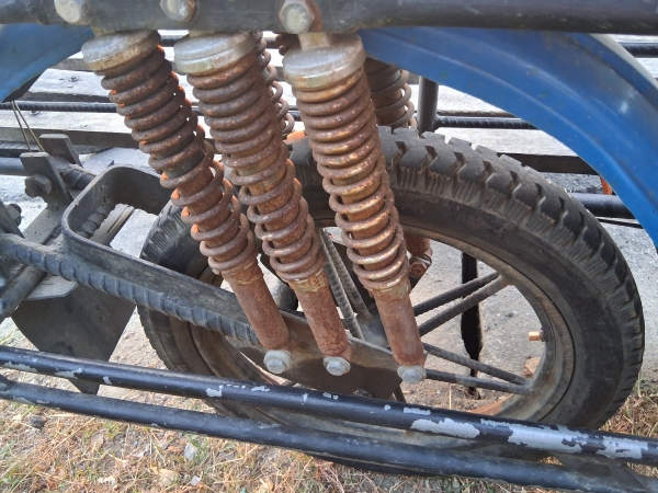 Az oldalkocsik építőinek legfontosabb és leggyakrabban használt nyersanyaga a bordázott betonvas, ami persze acél. Ez az elem arra is alkalmas, hogy erősebb lengőkart alakítsanak ki belőle, és a küllőket is helyettesíti, ha nagyobb teherbírás kell. Az pedig gyakran szükséges, elképesztő mennyiségű és súlyú áruval képesek megpakolni egy-egy oldalkocsis motort.