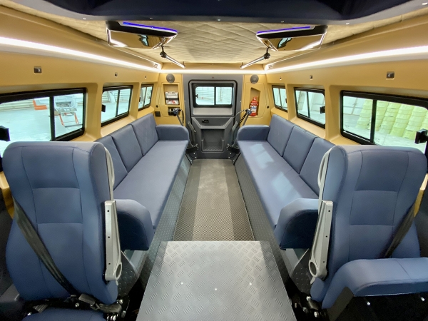 Két fő változata van: a Turisztban a vezetőn kívül további 8 utas fér el. Minden ülés egyedi, állítható kartámaszos és hárompontos biztonsági övvel van felszerelve.