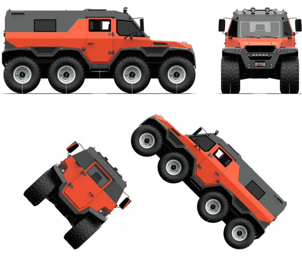 A nyolc-kerékhajtású orosz terepjáró szörnyeteg páratlan kényelmet biztosít az utasoknak és a vezetőnek, mert elegendő hely van ahhoz, hogy mindenki kényelmesen elférjen.
