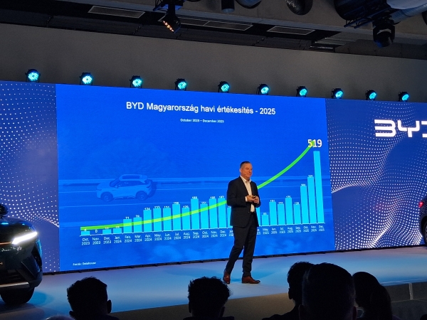 Szerinte a BYD jól kezdte az idei évet, az első két hónap alatt az értékesítés 85 százalékkal bővült éves összehasonlításban. A Datahouse adatai szerint 2026. január-februárban 464 új BYD kelt el a magyarországi újautó-piacon. Ez a személykocsik és kishaszonjárművek egyesített piacán közel 2,5 százalékos részesedést biztosít a márkának.