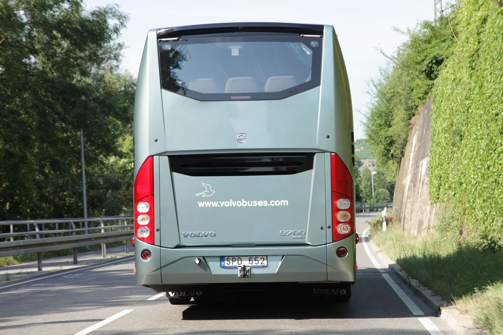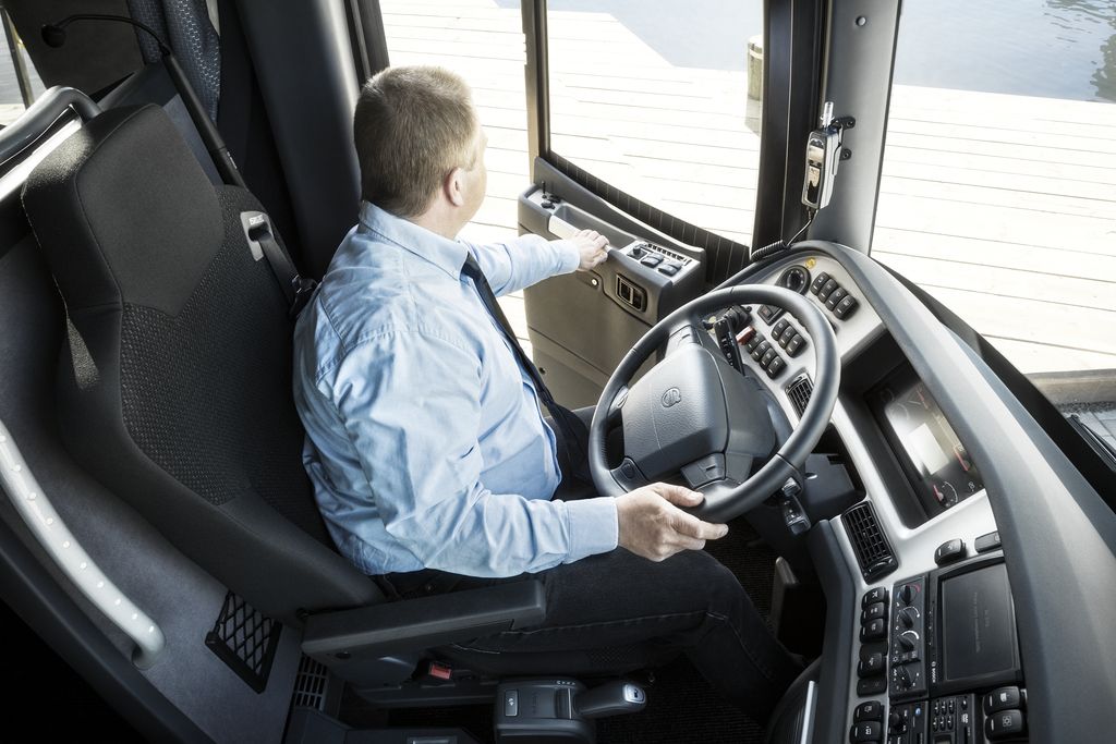 A homlokfali Volvo-embléma jobb láthatósága érdekében a hűtőmaszkot átszelő átlós vonalat egy kicsit laposabbra vették, így az hosszabban és láthatóbban keresztezi a fekete betétet. A karral jobban integrált tükrök motoros állítása, valamint az első ajtó fölötti térvilágítás ugyan csak opció, a kialakításnak köszönhetően azonban a tükrök és a tolatókamera által közvetített kép jobban érzékelteti a járművezetővel a busz körüli teret, mint ezidáig. A biztonságot szolgálja az új, kanyarfényszóróként is funkcionáló ködlámpa is.