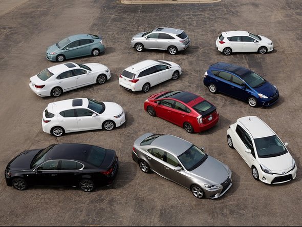 1997 augusztusában jelent meg az első hibrid Toyota a piacon, a Coaster Hybrid EV, de az első nagy sorozatban gyártott ilyen modell a Prius első generációja volt, ami szintén ebben az évben, de decemberben mutatkozott be. 2014 januárjában már 24 hibridet és egy konnektoros hibridet árul a japán gyártó különböző márkái kínálatában, a világ 80 országában. A kínálat növelése nem áll le, 2016-ig 15 új hibrid modellt fog bemutatni a gyártó.