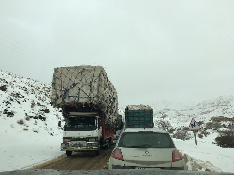 Az Atlasz-hegységben szélesített új utak és rém keskeny rosszak váltogatják egymást, olykor megtört szegélykorlátok jelzik, hogy nem mindenkinek sikerült követni a kanyar ívét. Ma sem unatkoznak a tréleresek, tíz kilométeren belül három összetört autó vár szállításra a Ouarzazate-Ighrem N'ougdal kanyarjaiban.