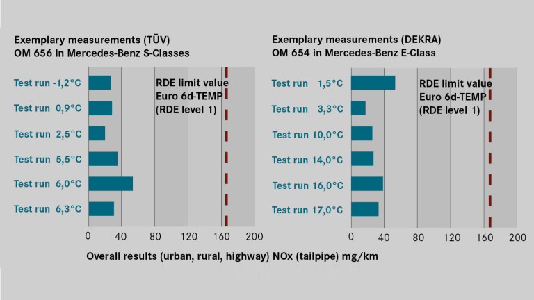 A dízelt eltemetőknek érdekes lehet, hogy a legújabb, prémium dízelmotorok a 80 g/km-es laboratóriumi határt képesek alulmúlni NOx-kibocsátásban, valós körülmények között, hidegindítást követően is. A Daimler egyik kutatásfejlesztő vezetője elmondta, a 2020-ban életbe lépő második típusú RDE teszt átlagosan 30 mg/km-es határértékét szeretnék megdönteni 20 g/km-es értékkel, mindezt évekkel a norma életbelépése előtt. A részecskekibocsátás terén is hasonló javulást tűztek ki célul, különösen városi környezetben.