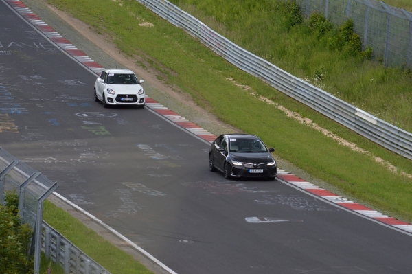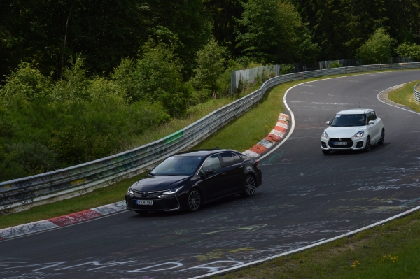 Nem volt könnyű, mert a széria Corollában, hétköznapi ülések voltak, amik a normál menetben kényelmesek, de gyors kanyarvételnél már kevés az oldaltartásuk, ahogy a hárompontos biztonsági övek sem fognak rendesen a dobálós pályán. Márpedig kanyarból akad bőven a 23 kilométeres Nordschleifén, és akkor még ott van a jelentős szintkülönbség, ami nem éppen szanatóriumi túra.