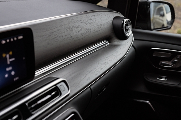 Az odaúton az egyetlen Exclusive kivitelű tesztautót vezettem a legerősebb dízelmotorral. Nem kérdés, hogy csak ezzel szabad rendelni a friss V-osztályt. Nem csak az esett jól, hogy időnként kipillantottam a motorház fedél elején ágaskodó csillagra, hanem a hosszabítható ülőlap, a kormányfűtés, az fűthető-szellőztethető bőrülés is. Mindeközben a szememet a műszarfal nyíltpórusú fabetétjei kényeztették, füleimet pedig a Burmeister HiFi 15 hangszórójából áradó 640 W-os zenei teljesítmény nyűgözte le.