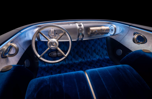 Inspirációnak az olyan klasszikusokat használták, mint a W108, a W111 vagy a 600 Pullman. Még a cápauszony oldalsó légbeömlők is visszatértek. Mindezt a modern korba átültetve a hatalmas, megvilágított Iconic Grille-el, ami a sorozatgyártásra váró, elektromos GLC-n debütált nem rég Münchenben. Itt azonban a horizontális vonalakkal sokkal jobban sikerült az elődök védjegy hűtőrácsát megidézni, az égbe ágaskodó Mercedes csillaggal vegyítve. „Guruló szobor, az időtlen elegancia előtti tisztelgés, a jövő meghatározása.” Így írta le a koncepciót Gordon Wagener, a Mercedes dizájn főnöke, aki szerint az autós 30-as évekbeli aranykorszakát igyekeztek megidézni.