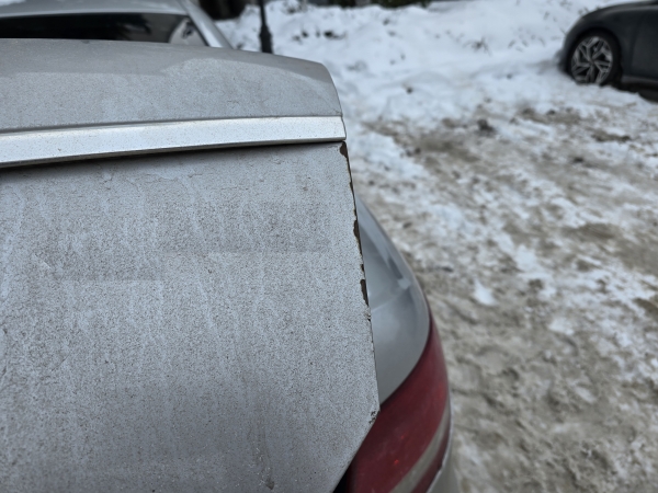 A csomagtérajtón rozsda van. És ez nem fog megállni, az egész fedélről le fogja dobni a festéket. Visszatérve a hátsó vészhárítóhoz, a tolatóradar szenzorjai be vannak esve, a diagnosztikában is láthatóan nem működnek. (Én már nem is számolom, mennyit kellene itt költeni.)