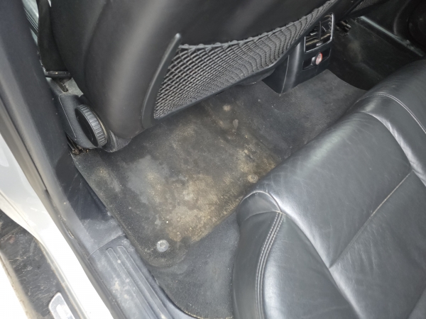 Ott kezdeném, hogy eladásra illene kipucolni a kocsit. Ha többre nincs keret, vagy idő, akkor legalább egy alapos porszívózás és törölgetés mindenképpen beleférne. De nem. Az A6 belseje koszos volt. Hell-es doboz a középboxban, nem belevaló első szőnyegek (egy Mazdából importálva) és hiányzó hátsók. Utóbbi pedig indokolt lett volna, mert a hátsó padlókárpitban idült retek ült.