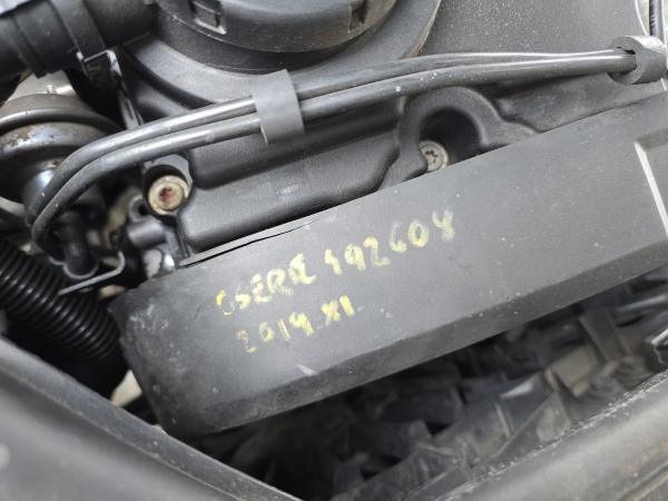 A motortérhez még annyit, hogy a tűzfal szigetelés szakadt és a szervoszivattyú szivárog, de ezektől vehető lenne a kocsi, úgyhogy menjünk tovább. A jelölés szerint utoljára 2019-ben volt vezérléscsere a TDi-n…
