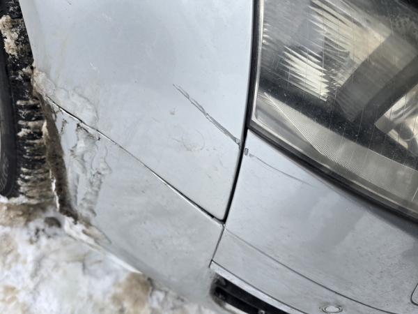 Az első lökhárító a jobboldalon le van húzva, a sérülés átér a jobb első sárvédőre is. Hopp, két elem fényezés. A baloldali fényszóró be van mattulva rendesen, de ezen egy lelkes tulaj, akár önmaga is segíthet. A jobboldali ajtók élei leverve, fényezni kellene a hátsó lököst is és kis rosszindulattal mindkét hátsó sárvédőt.