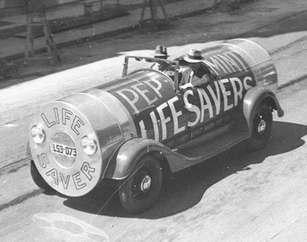 A Life Savers már több mint 100 éve létezik. 1912-ben Clarence Crane, egy ohiói cukorkagyártó alkotta meg. Új mentolos cukorkáját alakja után nevezte el – kerek volt, közepén lyukkal, így hasonlított egy mentőgyűrűre. A New York-i Noble család egy évvel később megszerezte a licencet, és a Life Savers-t háztartási névvé tette, amely magában foglalta a cukorka tekercsbe csomagolását is. Bár Amerikában is építettek reklámteherautókat, az ausztrál leányvállalat volt az, amelyik igazán kidolgozta az ötletet, és 1924-ben megalkotta a Pep-O-Mint alakú autót. A fennmaradt fényképekből kitűnik, hogy többet is építettek belőle.