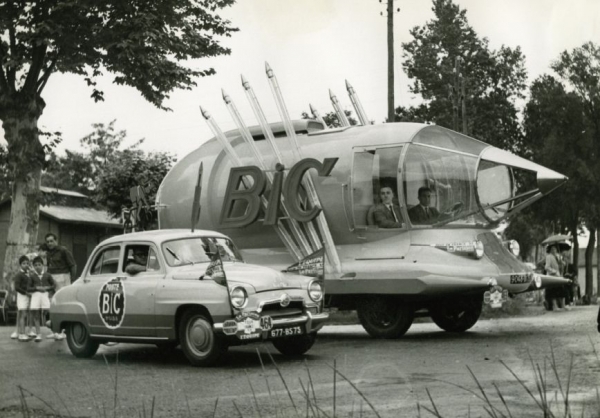 1953-ban Aublet lenyűgöző tervet készített a BIC megbízásából, amely 1944-ben íróeszköz-alkatrészek gyártójaként alakult, de golyóstolljairól vált széles körben ismertté. Ez az egyik azon kevés vállalatok közül, amelyek még ma is reklámjárművekkel támogatják a Tour de France versenyt! Aublet együttműködött az Augereau céggel, amely Renault teherautóra fémlemezt és plexiüveget használva építette fel a karosszériát, amely egy tollat ábrázolt, hátulján kupakkal. Az oldalán további tollak láthatók. Forrás: BIC
