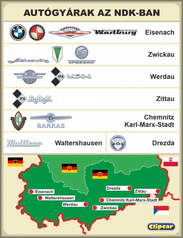 A második világháború végére a járművek és a közlekedési infrastruktúra nagy része megsemmisült. Az NDK Dél-keleti régióban egymást érték az autógyárak. (Hasonló koncentráció Detroit környékén jött létre az Egyesült Államokban.)