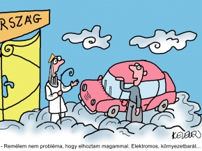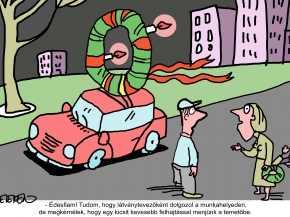 Heti rajzunk készítője Kelemen István, karikatúrájának címe: Mennyei autó.