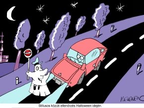 Heti rajzunk készítője Kelemen István, karikatúrájának címe: Ellenőrzés Halloweenkor.