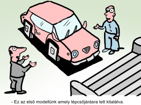 Heti rajzunk készítője Kelemen István, karikatúrájának címe: Lépcsőjáró autó.
