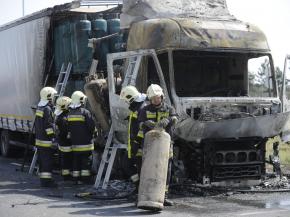Kigyulladt egy üres nitrogénpalackokat szállító kamion szombat délután az M5-ös autópályán a 35-ös kilométerszelvényben - közölte Csámpai Attila, a Pest Megyei Katasztrófavédelmi Igazgatóság szóvivője.