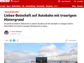 Valentin-nap környékén megható üzenetekkel hívja fel a figyelmet a közúti közlekedés veszélyeire az osztrák autópálya-kezelő ASFINAG - írja a Heute című napilap online kiadása.